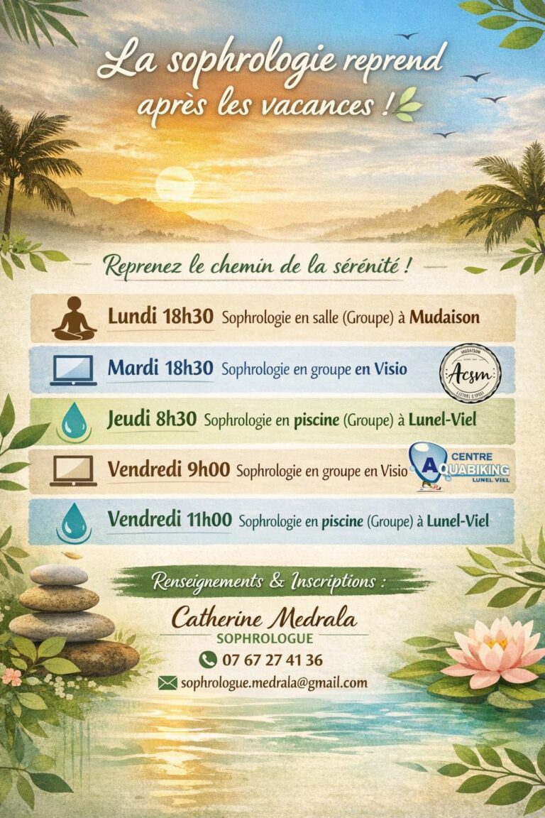 Nouveauté! Je propose des séances de sophrologie en piscine le jeudi et vendredi à Lunel Viel.